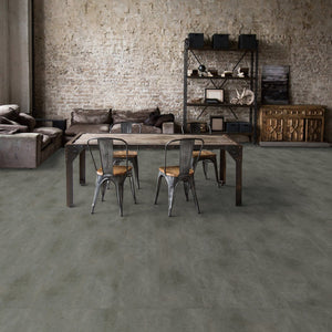 A collection of four core colours of stone-effect glue-down LVT tiles, perfect for an industrial interior finish. Finished with stone embossing and a matt film, these tiles look and feel hyper-realistic.